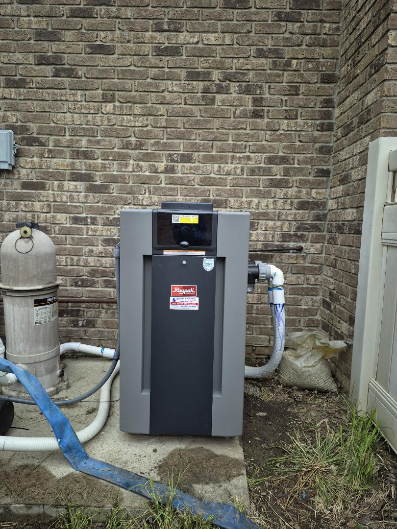Installation of a replacement Pool heater with a new Rapak. Installation of replacement pool filter pump with a new Pentair.